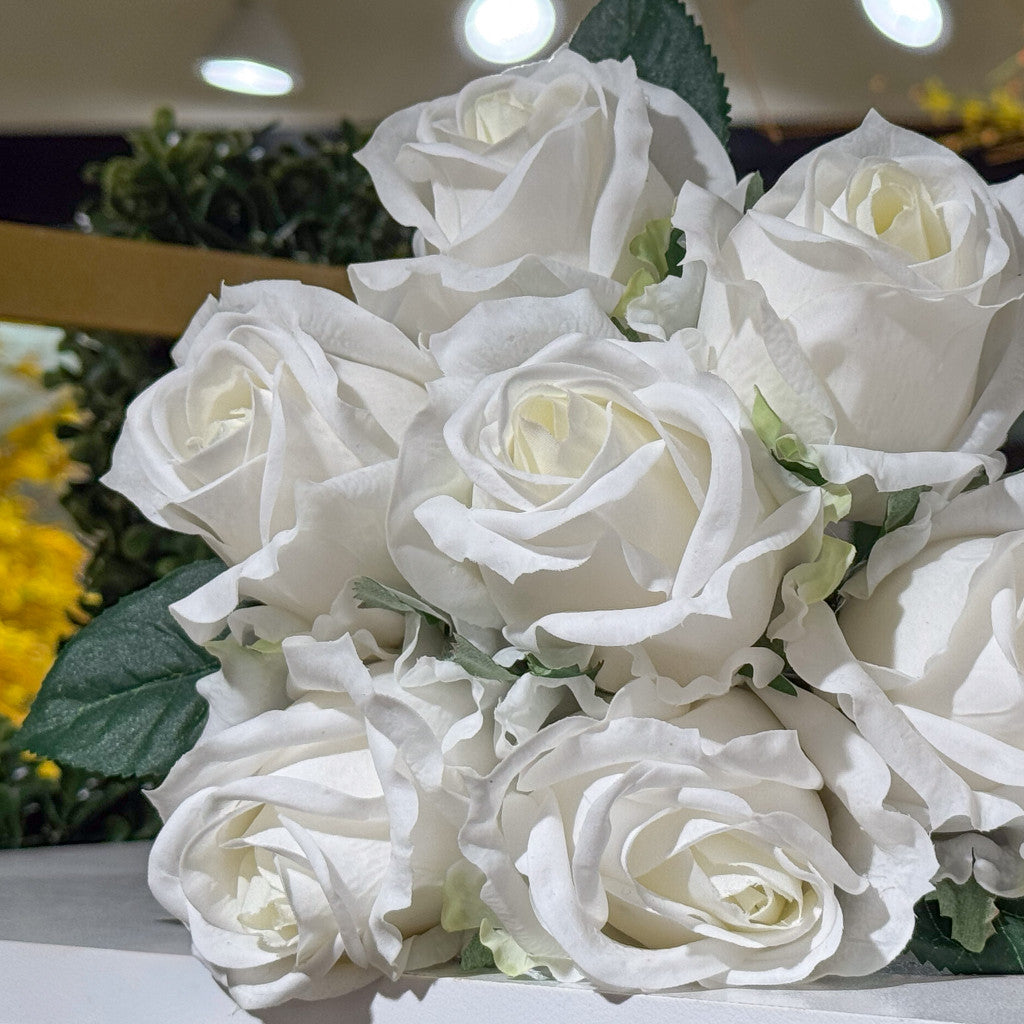 With its pristine white hue and exquisite craftsmanship, the Isabel Real Touch Bouquet brings purity, elegance, and serenity to any setting. A lasting floral arrangement that combines the beauty of fresh roses with the convenience of maintenance-free design, making it perfect as a gift or a decorative centrepiece2.