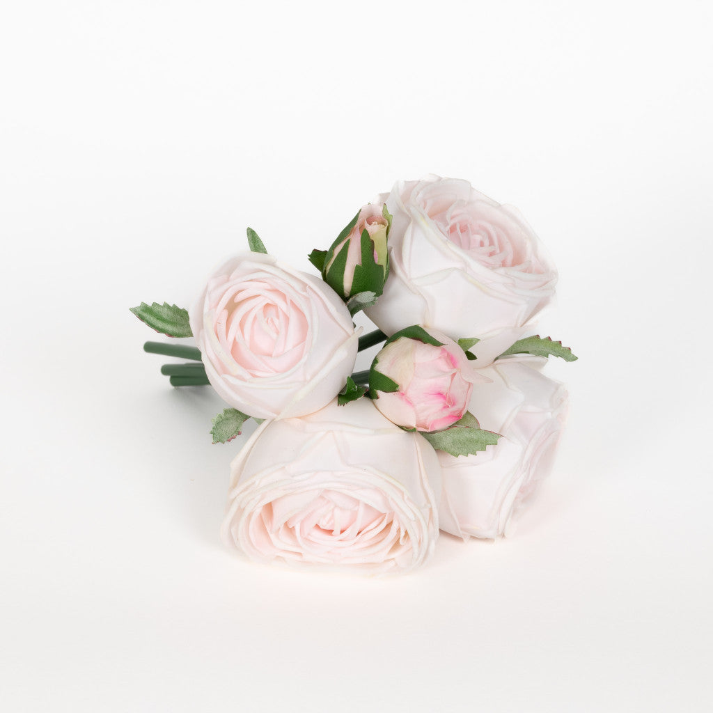 REAL TOUCH ROSE GARDEN 9 INCH BOUQUET - SOFT PINK - 6 BLOOMS