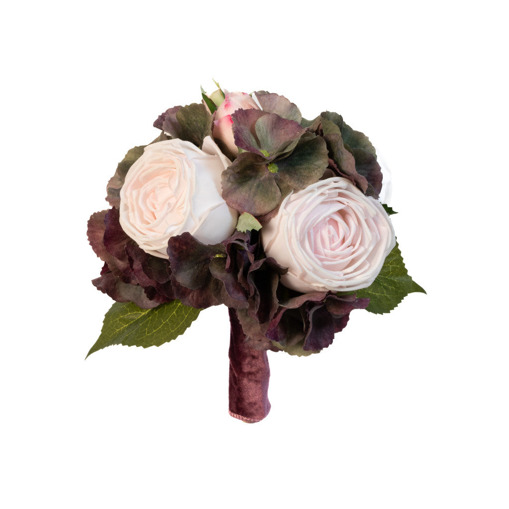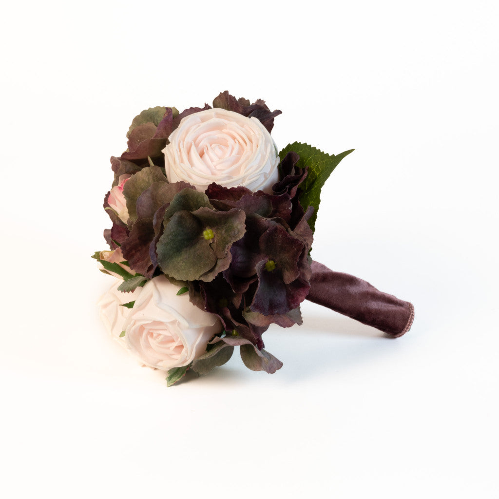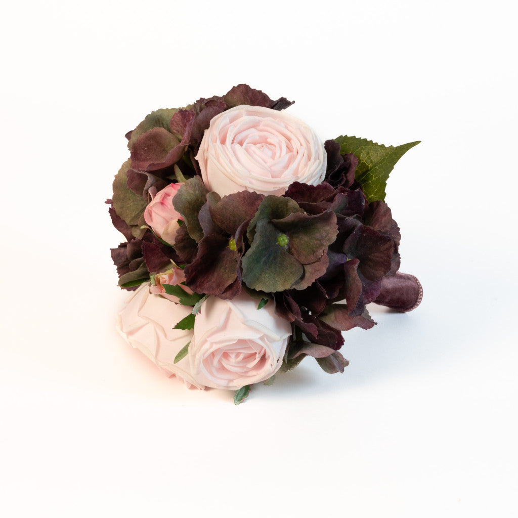 • Soft pink roses blended with rich hydrangea hues